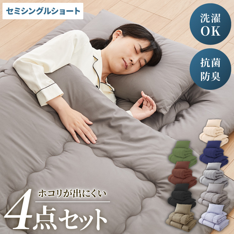 布団4点セット セミシングルショート Ever Clean エヴァークリーン ほこりが出にくい 中空ポリエステル綿 洗える ピーチスキン加工 軽量 おしゃれ