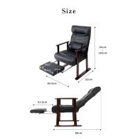 木製肘付リクライニング高座椅子 フットレスト付 ヘッドレスト 肘掛 椅子 高齢者 介護 立ち座り 和室 レバー オットマン 黒 代引不可