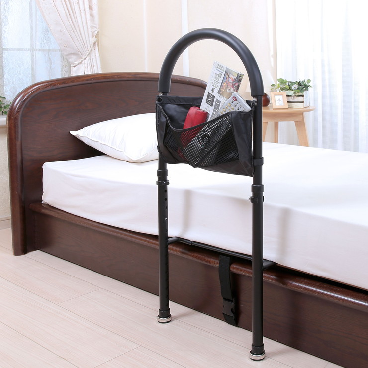 ベッド 手すり 持ちやすいグリップ 高さ14段階調整 小物収納付き 布団のずり落ち防止 起き上がり補助 ベッドガード 転落防止 代引不可