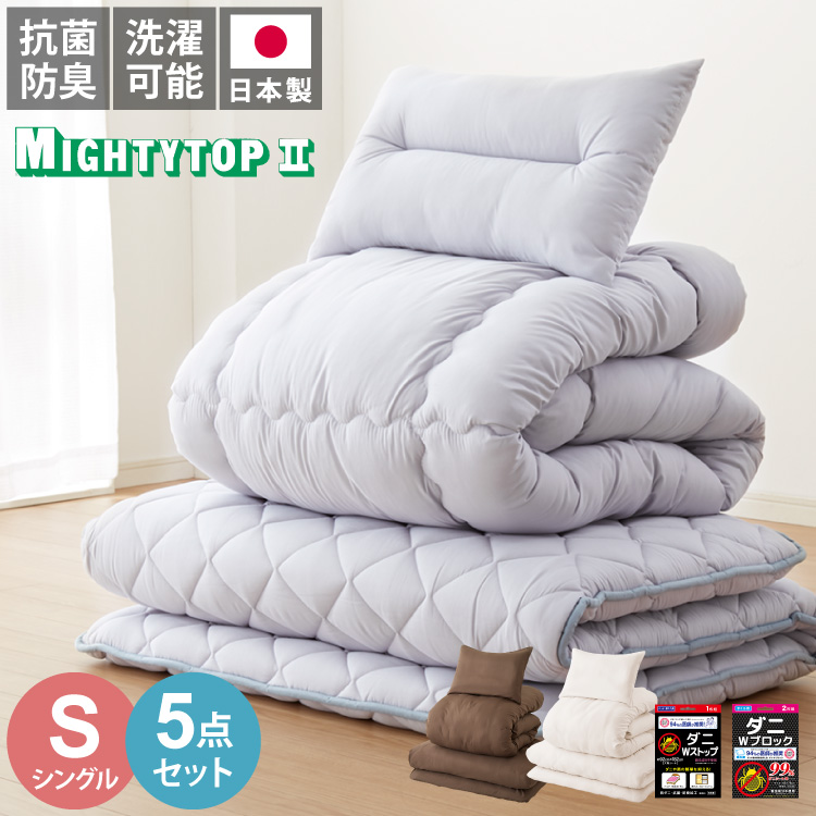 ダニWブロックシート付 国産 布団セット シングル 3点セット 中綿増量1.8kg 抗菌防臭 防ダニ マイティトップ 固綿入り 一人暮らし 来客用
