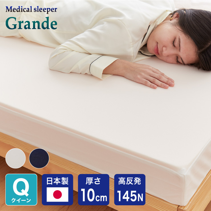 マットレス 日本製 メディカルスリーパー グランデ クイーン 一枚もの 極厚 高反発 硬め 国産 ウレタン ニット 体圧分散 145N トッパー 代引不可