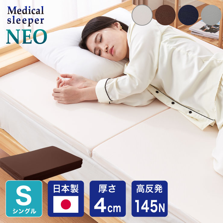 マットレス 日本製 メディカルスリーパー ネオ シングル 厚さ4cm 三つ折り 3つ折り 国産 体圧分散 腰痛 寝返り 硬め 折りたたみ 収納 高反発 代引不可