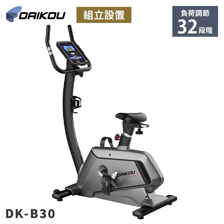 組立設置あり DAIKOU 電動負荷32段階&静音設計 家庭用アップライトバイク DK-B30 心拍測定 内蔵プログラム搭載 タブレットホルダー付き 代引不可