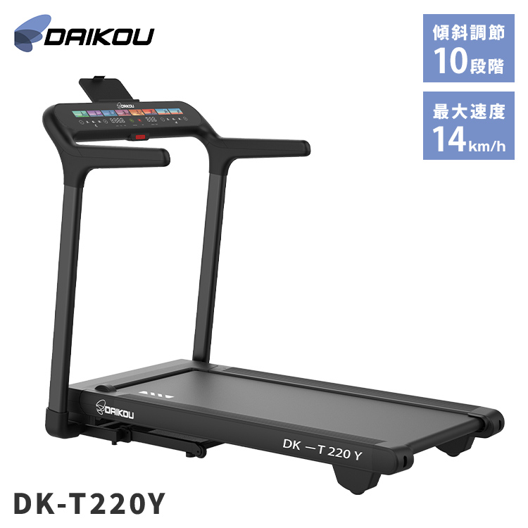 DAIKOU 家庭用ランニングマシン DK-T220Y 14km/h対応 電動傾斜10段階 Bluetooth対応 タッチパネル 静音設計 心拍測定ベルト付き 衝撃吸収構造 代引不可