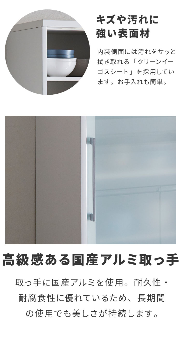 食器棚 完成品 引き戸 幅100cm 開梱設置付き 大川家具 日本製 大容量 スリム キッチンボード カップボード キッチン収納 ガラス扉 飛散防止 代引不可