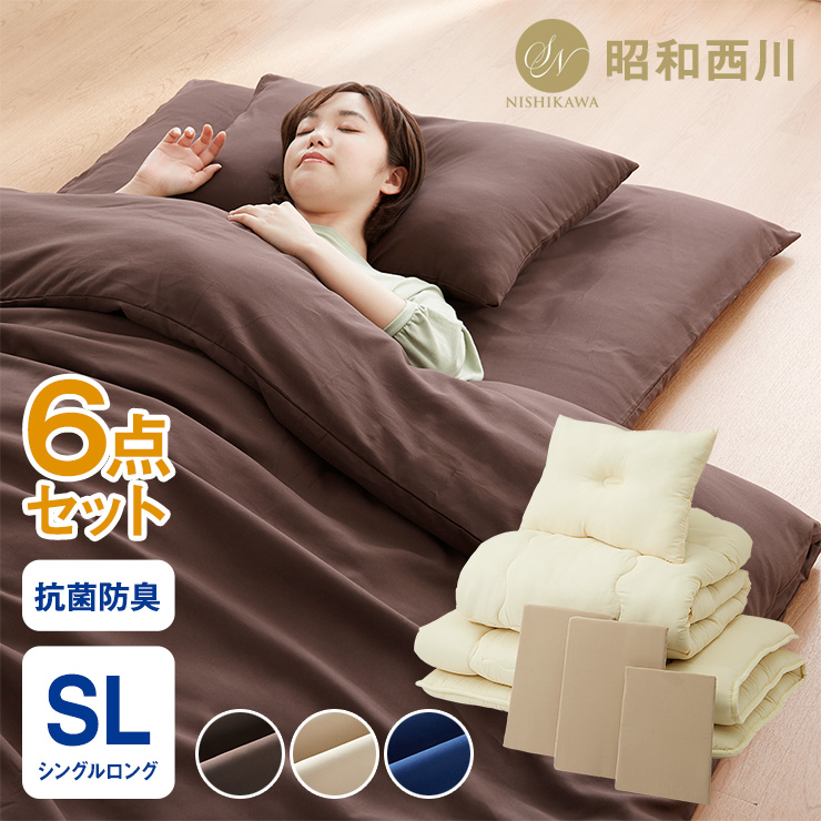 布団6点セット シングル 昭和西川 掛け布団 敷き布団 枕 カバー3点セット 3層敷き布団 頸椎安定型枕 抗菌防臭 低ホルマリン 無地 にしかわ 送料無料