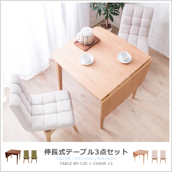 ダイニングテーブル 3点セット ダイニングセット 木製 北欧 ダイニングテーブル幅80-120cm 回転式ダイニングチェア2脚 木目 代引不可