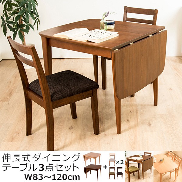 ダイニングテーブル 3点セット ダイニングセット 木製 北欧 伸長式 伸縮 幅83-120cm+ダイニングチェア2脚 バタフライテーブル 代引不可