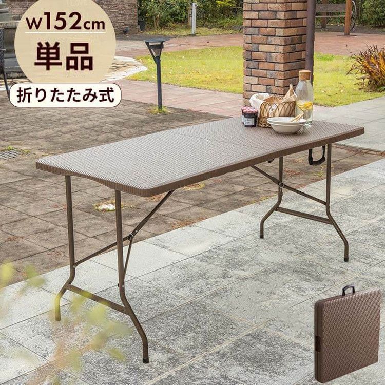 ラタン調 折りたたみ ガーデンテーブル マカティ 幅152cm 折りたたみテーブル 屋外 アウトドア テーブル ベランダ テラス 折り畳み コンパクト 代引不可