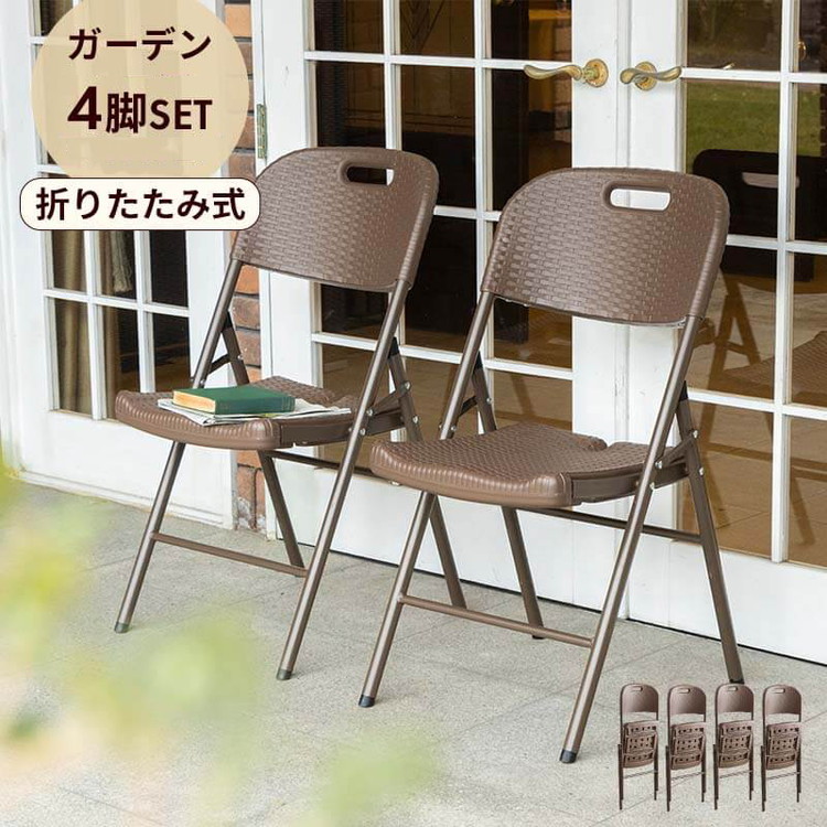 ラタン調 折りたたみ ガーデンチェア マカティ 4脚セット 折りたたみ 椅子 チェア 屋外 アウトドアチェア ガーデン椅子 ベランダ テラス 折り畳み 代引不可