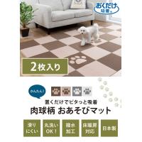 サンコー おくだけ吸着 おあそびマット 2枚入 肉球 タイルマット はっ水 滑り止め 洗える 撥水タイルマット 撥水マット ジョイントマット ペット