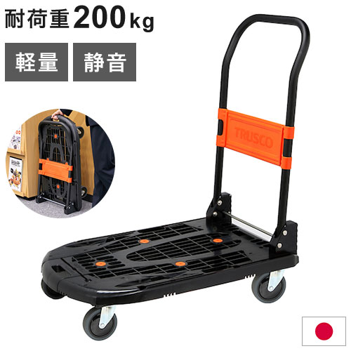 TRUSCO 樹脂台車 カルティオ 新型 780X490 折畳 黒 MPK-780-BK 軽量 均等耐荷重200kg 静か オフィス 代引不可