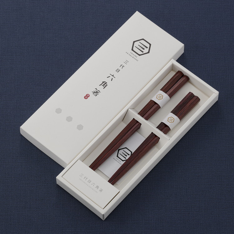 三代目紫檀六角箸 大・中2本組 代引不可