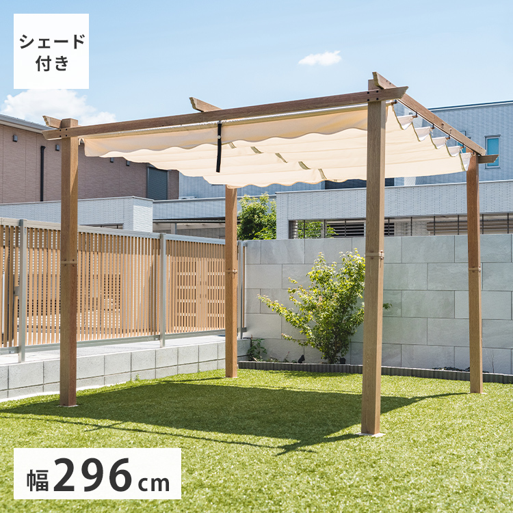 シェード付きパーゴラ 約3×3m ナチュラル 木目調 ガゼボ パーゴラシェード サンシェード オーニング ガゼボ 日よけ 日除け テラス エクステリア 代引不可