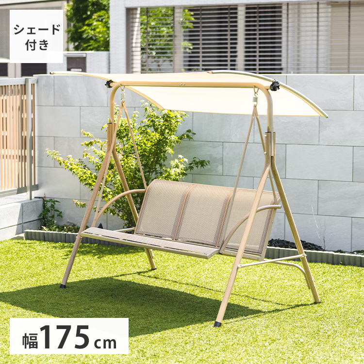 シェード付きブランコ 幅175cm ブランコ ロッキングベンチ 屋根付き 角度調整 ナチュラル 木目調 ベンチ 日除け テラス エクステリア ベランダ 庭 代引不可