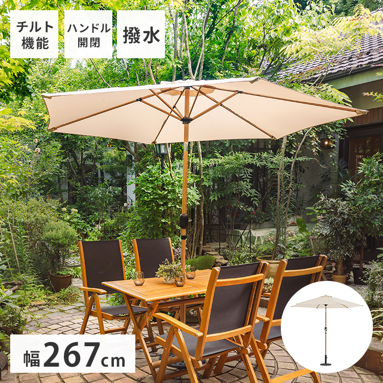 ガーデンパラソル 約幅270cm ナチュラル 木目調 角度調整可能 パラソル 日よけ サンシェード 単品 日除け テラス エクステリア ベランダ 庭 代引不可