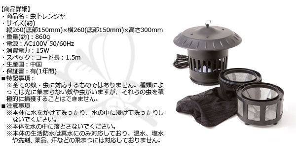 毎年夏になると気になるのがうっとおしい蚊。いつの間にか部屋に入り込んで、目の前をブ〜ンブ〜ン。退治しなきゃ!でもニオイを出したり、薬剤をまくのはイヤ!小さなお子様やペットがいるご家庭は心配ですよね。そんな方へおすすめなのがこの『虫トレンジャー』。確実に蚊を捕獲するシンプルかつ強力な構造に驚き!