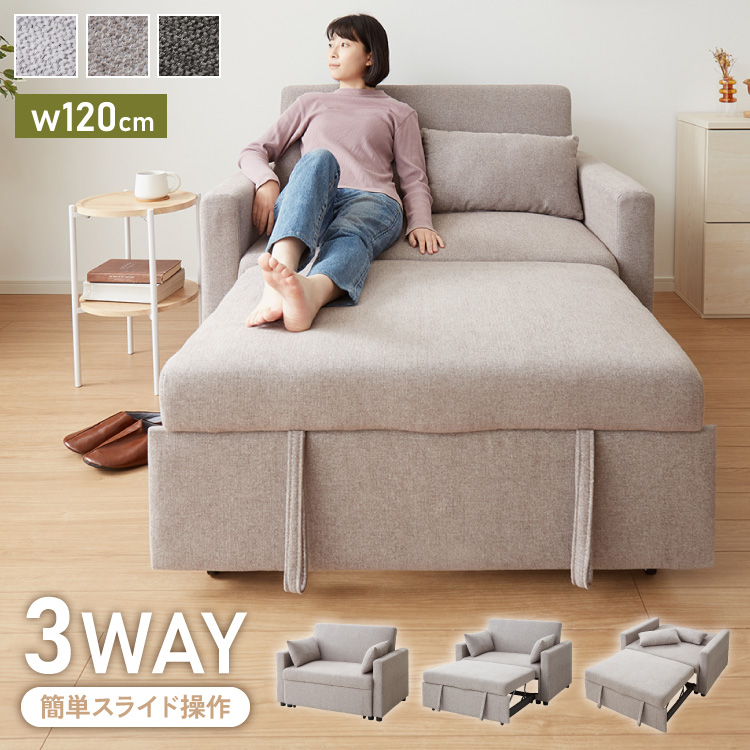 3way、ソファーベッド、sofa、シングル、セミダブル、3way、1人掛け、2人掛け、3人掛け、多機能ソファ、ごろ寝、ソファ、ソファー、ベッド、カウチ、伸縮式、スライド式、アイスグレー、グレージュ、ヘザーグレー、おしゃれ、モダン、3段階、リクライニング、ペット、キズに強い、ひっかきに強い