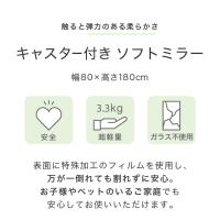 ソフトミラー、ソフト、幅80cm、高さ180cm、キャスター付きミラー、移動、立て掛け鏡、スタンドミラー、全身ミラー、薄型ミラー、薄型、大型、フィルム製、フィルムミラー、ソフト、鏡、ミラー、メイク、ファッションチェック、運動、ヨガ、ダンス、リハビリ、鮮明、高反射率、軽量設計、おしゃれ、かわいい、韓国インテリア、シルバー、飛散防止