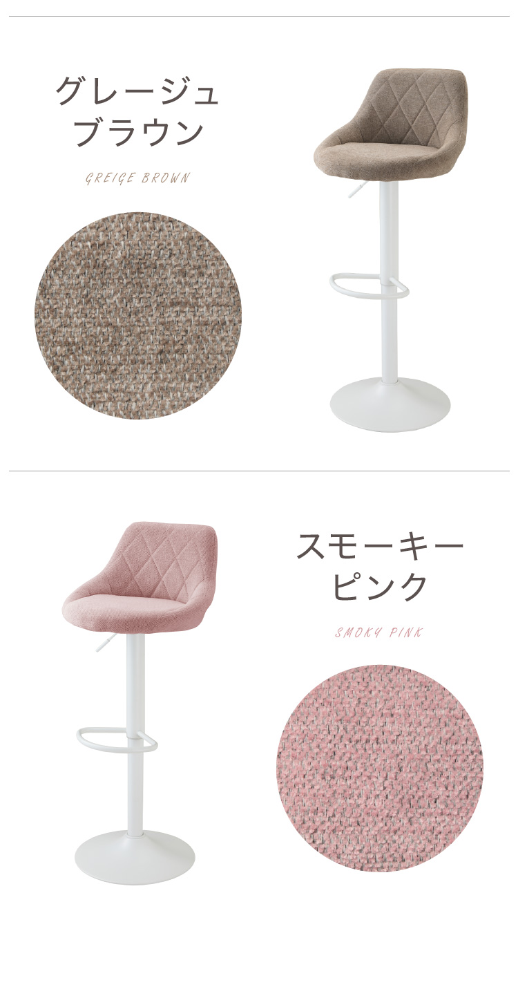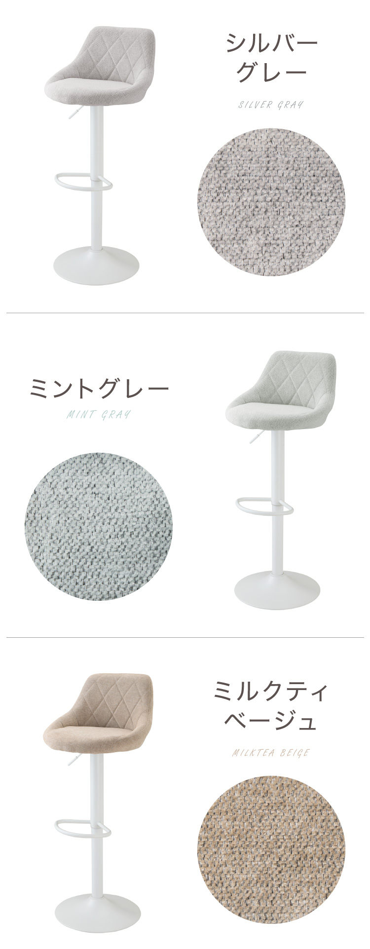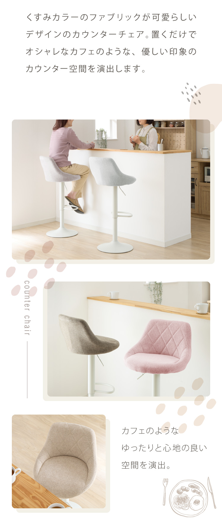 カウンターチェア、ガス圧、回転式、昇降式、ガス圧昇降、背もたれ付き、ファブリック、かわいい、北欧