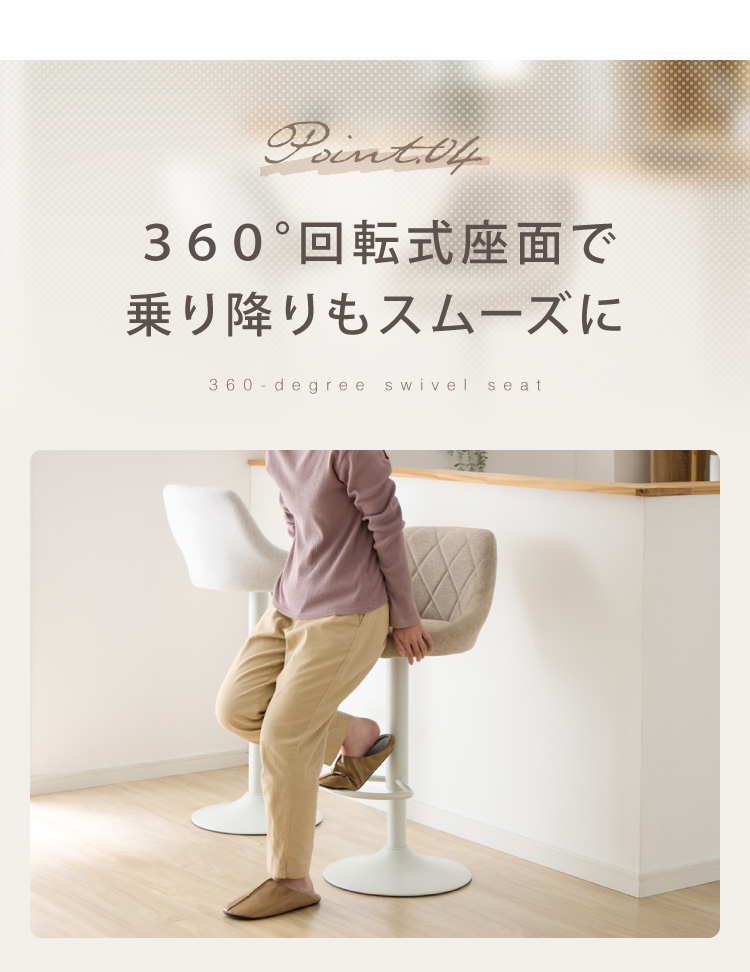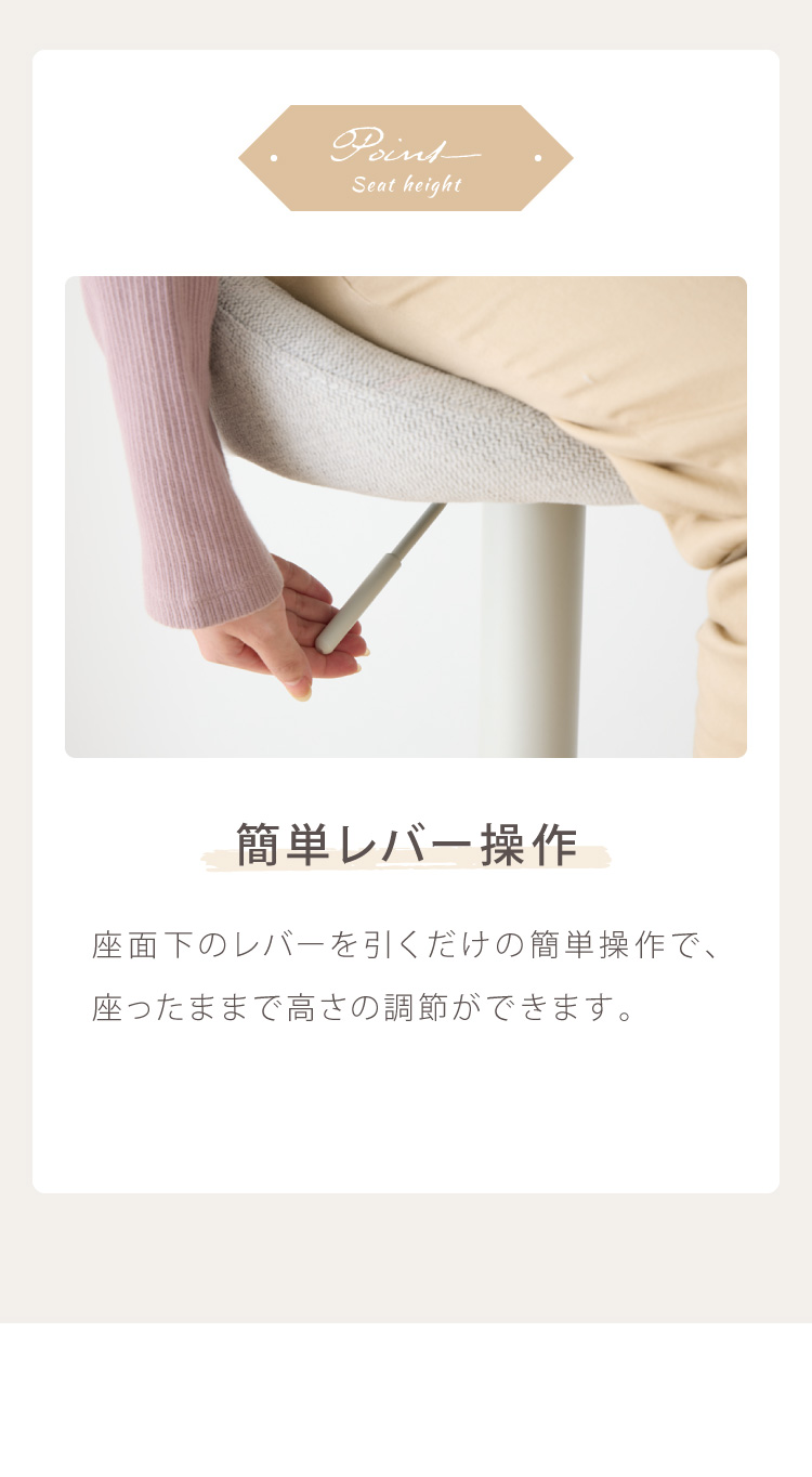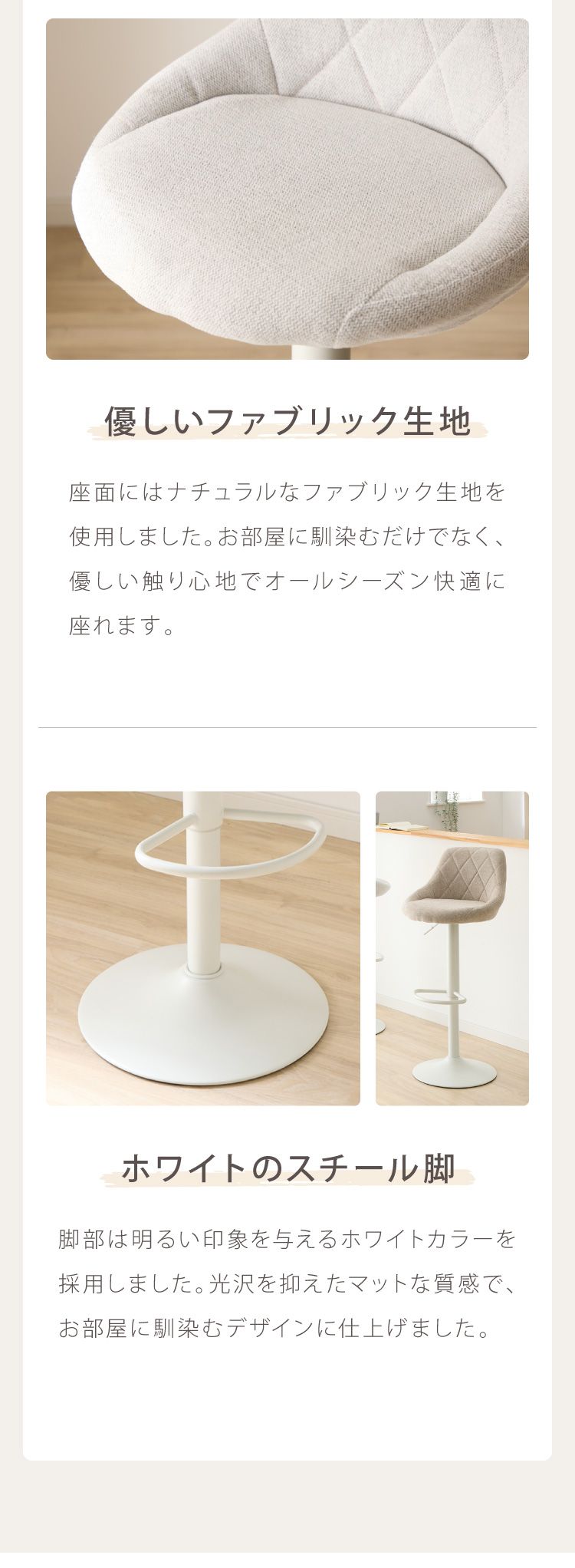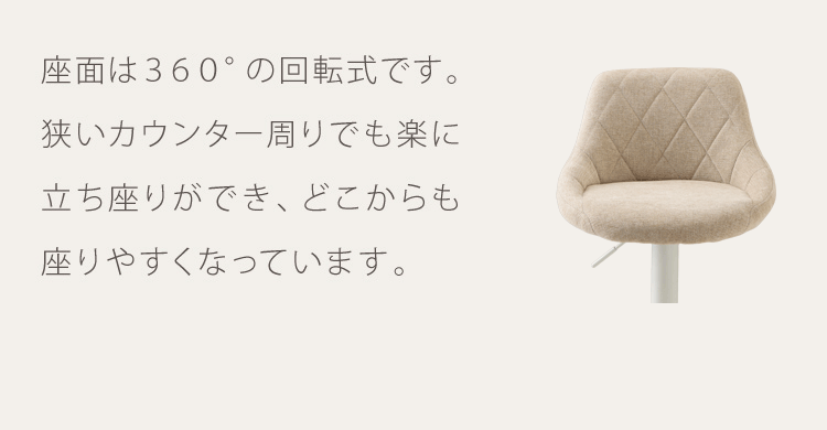 カウンターチェア、ガス圧、回転式、昇降式、ガス圧昇降、背もたれ付き、ファブリック、かわいい、北欧