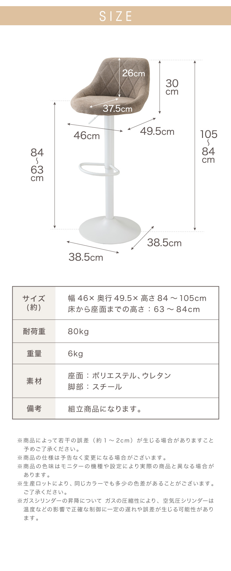 外寸:幅46×奥行49.5×高さ84〜105cm
