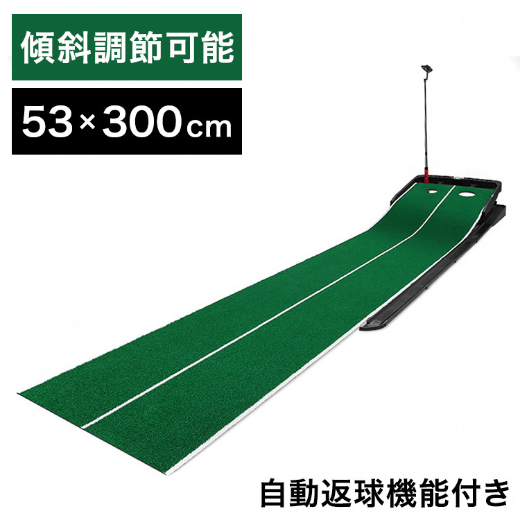 パターマット ゴルフ パター パター練習 傾斜調節可能 カップ回転機能 自動返球機能 折りたたみ コンパクト 省スペース 53cm×300cm ゴルフ練習