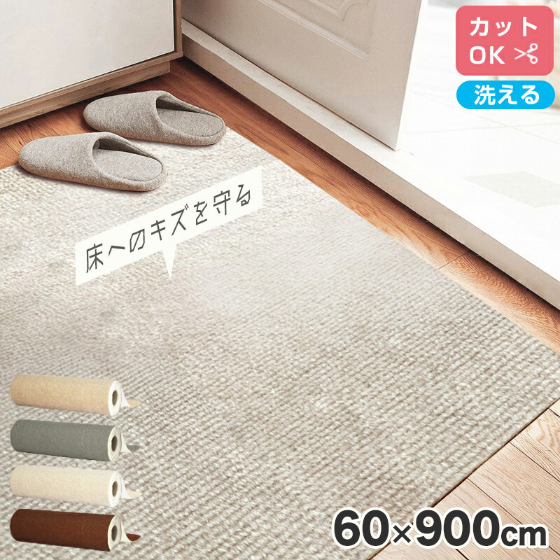ロングカーペット幅60cm 長さ9m 吸着 滑り止め 洗える 床暖房対応 防音 床保護 傷防止 ノンホルム フリーカット 簡単設置 子ども ロールカーペット
