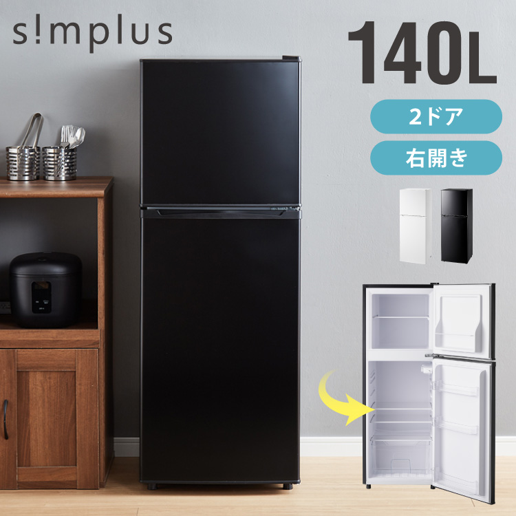 simplus 冷蔵庫 2ドア 140L 冷凍冷蔵庫 家庭用 冷凍庫 一人暮らし オフィス 右開き 新生活 マット加工 SP-140LD2 温度調整可 シンプラス 【メーカー保証1年】