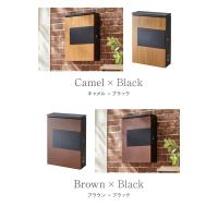 郵便ポスト、キーロック付、スチール製、角2対応、A4対応、大容量、省スペース、コンパクト、軽量、サビにくい、おしゃれ、木目調、鍵付き、セキュリティ、壁付けポスト、郵便受け、郵便、ポスト、メールボックス、POST、ナチュラル×シルバーグレー、ブラウン×ブラック、キャメル×ブラック、キャメル×シルバーグレー