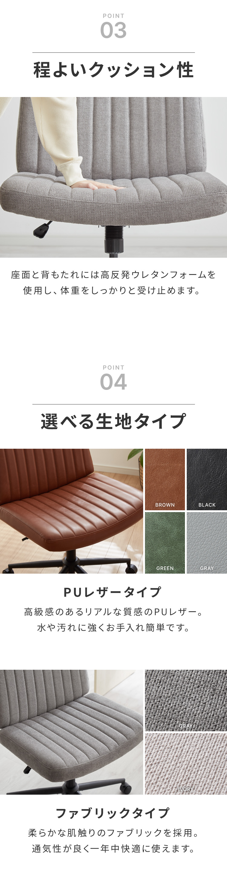 ポリエステル/ポリウレタン、ウレタン、スチール