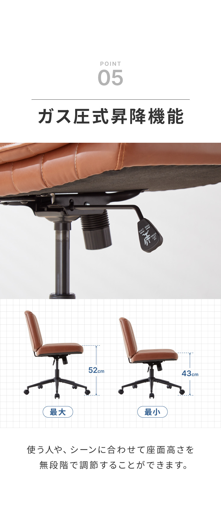 座面高:高さ43〜52cm