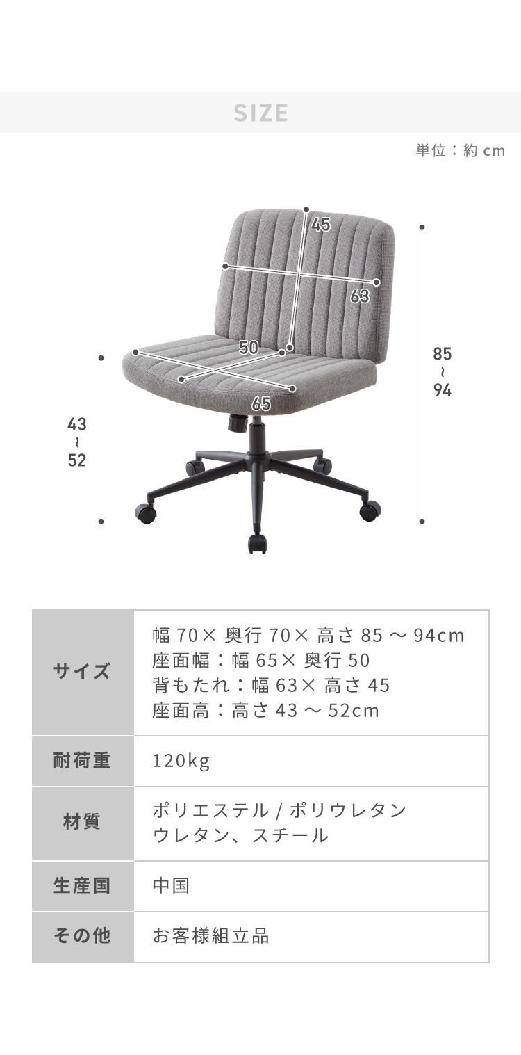 外寸:幅70×奥行70×高さ85〜94cm