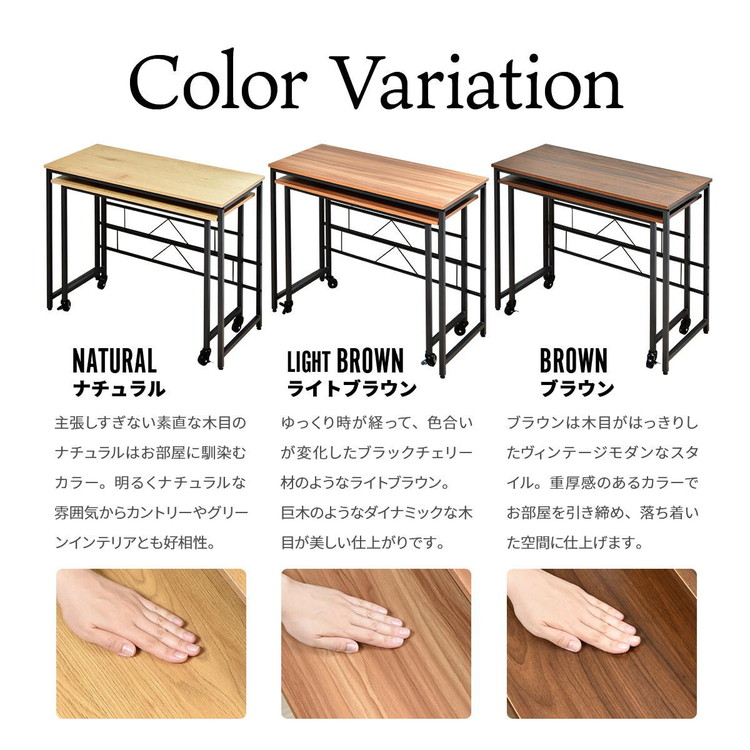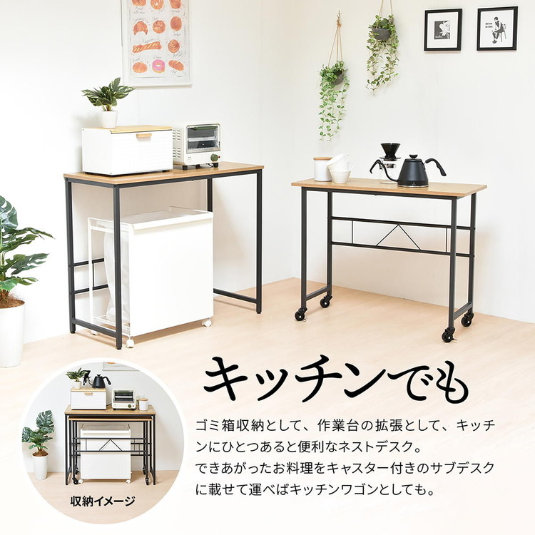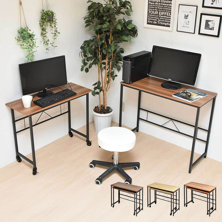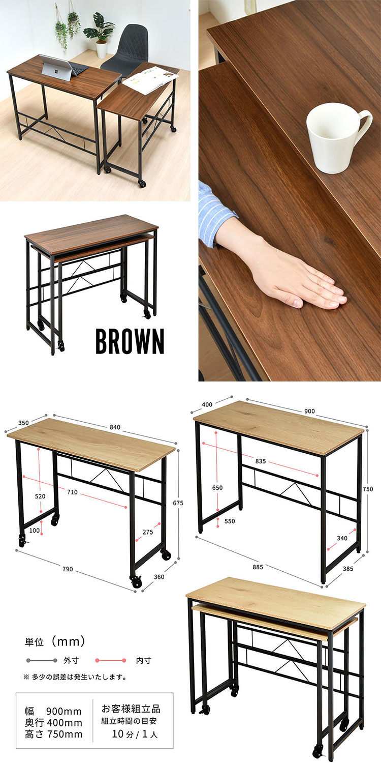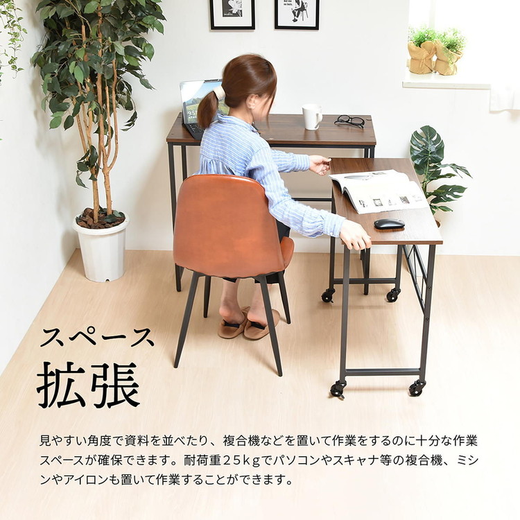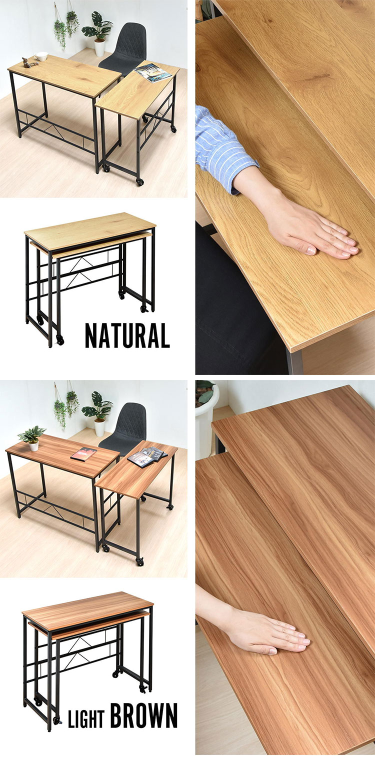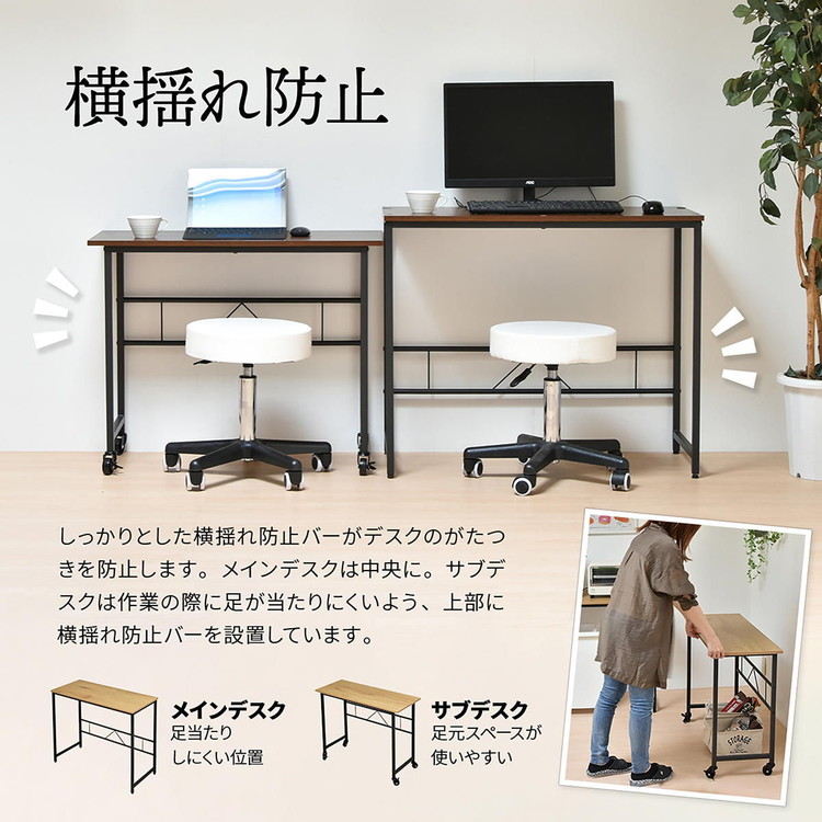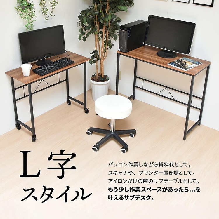 ■メインデスクとサブデスクがそれぞれ独立し、重ねたり並べたりL字に置いたりと自由に配置できるデスクです。 サブデスクにはキャスターがついているのでワゴンの代わりとしても使用できます。