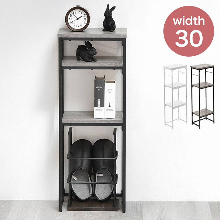 コンソールテーブル 玄関 ラック スリム 幅30cm グレー ホワイト 棚付き フック付き 省スペース シンプル モダン おしゃれ 廊下 リビング 代引不可