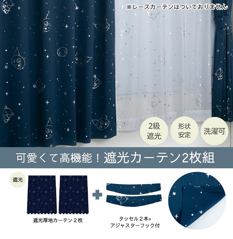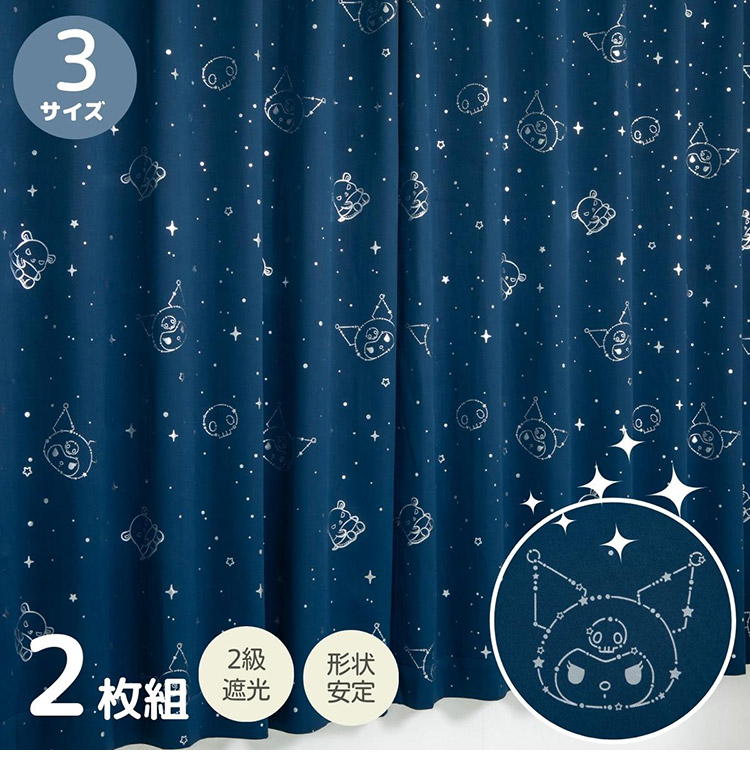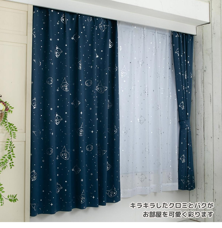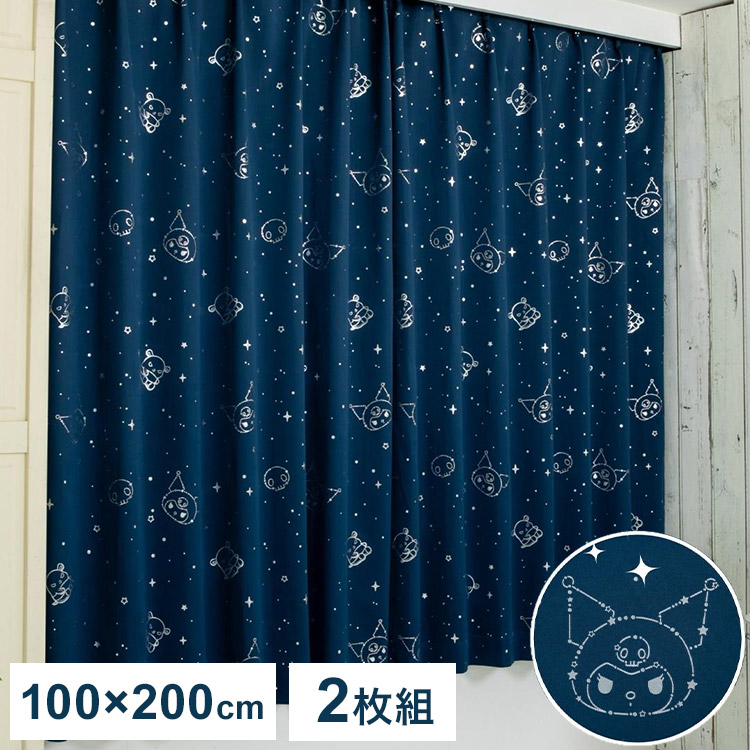 クロミ キラキラ 遮光 幅100×丈200cm カーテン 2枚セット 正規ライセンス品 公式 サンリオ SANRIO クロミちゃん バク マイメロディ マイメロ 代引不可