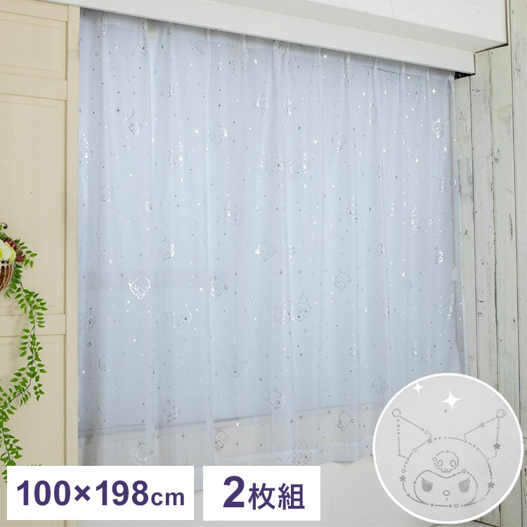レースカーテン 2枚セット クロミ 幅100×丈198cm UVカット率99.9% 外から見えにくい キャラクター グッズ 正規ライセンス品 公式 サンリオ SANRIO 代引不可