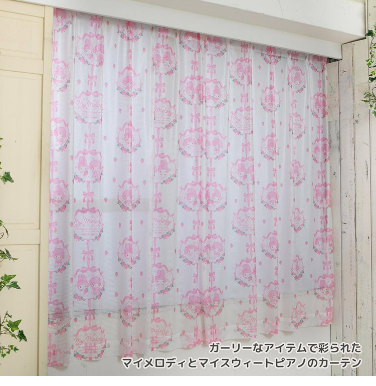 マイメロディ&マイスウィートピアノ 幅100×丈176cm レースカーテン 2枚セット UVカット率99.9% 外から見えにくい キャラクター 正規ライセンス品 代引不可