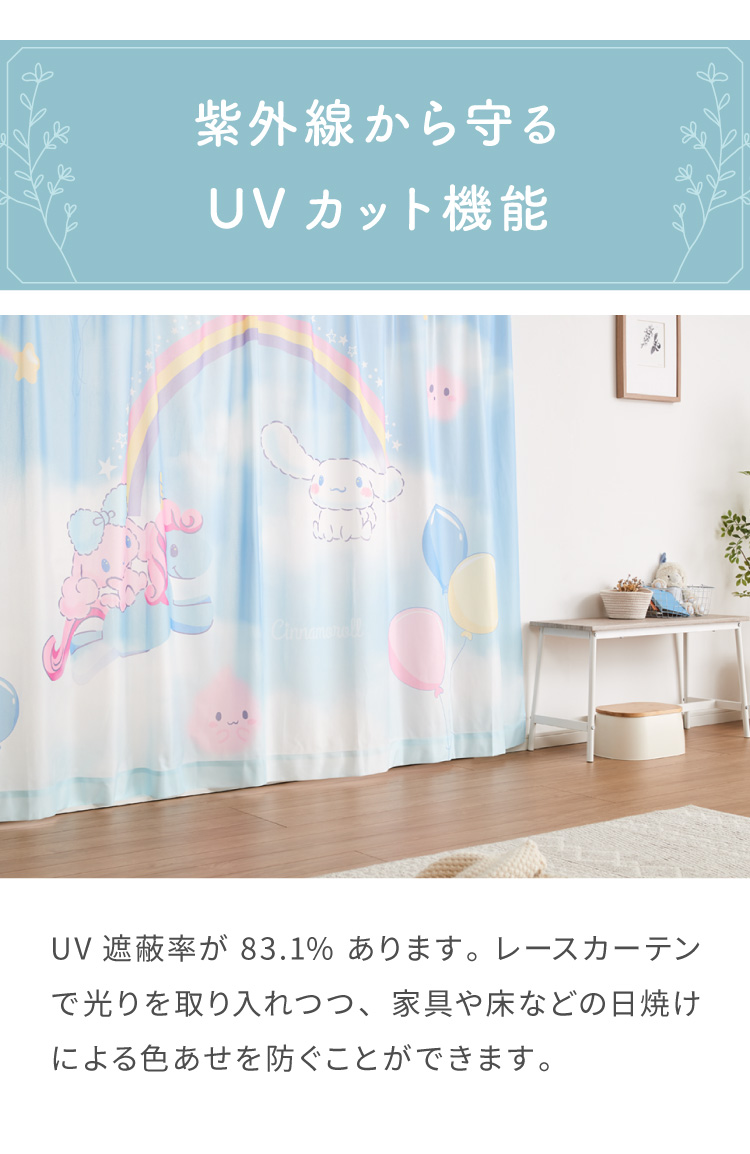 シナモン絵羽レースカーテン 2枚組 100×133cm UVカット 洗える 洗濯 プライバシー 目隠し フック付き カーテン 紫外線 おしゃれ かわいい サンリオ 代引不可