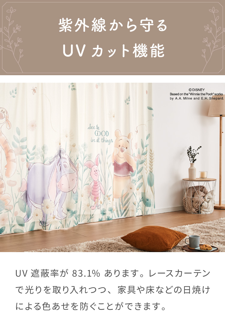 プーさんカーテンセット 4枚組 100×135cm 遮光カーテン レースカーテン 洗える 洗濯 カーテン フック タッセル付き おしゃれ かわいい ディズニー 代引不可