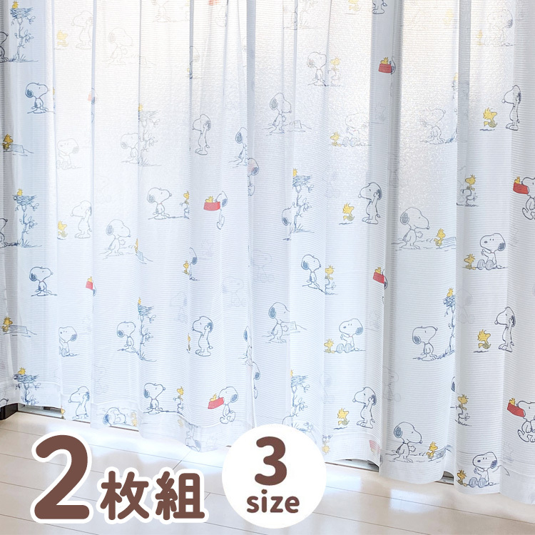 Peanuts ピーナッツ スヌーピー レースカーテン 外から見えにくい カーテン 2枚組 遮光 洗える ウォッシャブル 北欧 おしゃれ レース 代引不可