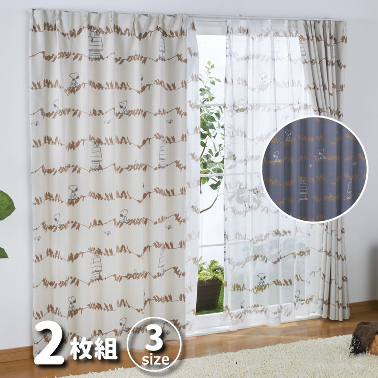 遮光カーテン 2枚組 スヌーピー リーフ 幅100cm 丈135cm 丈178cm 丈200cm 2級遮光 遮熱 形状記憶 Snoopy Peanuts おしゃれ 代引不可
