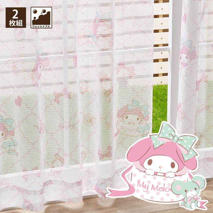 マイメロディ レースカーテン 2枚組 幅100cm 丈133cm 丈176cm 丈198cm 洗える ウォッシャブル おしゃれ 北欧 サンリオ 代引不可