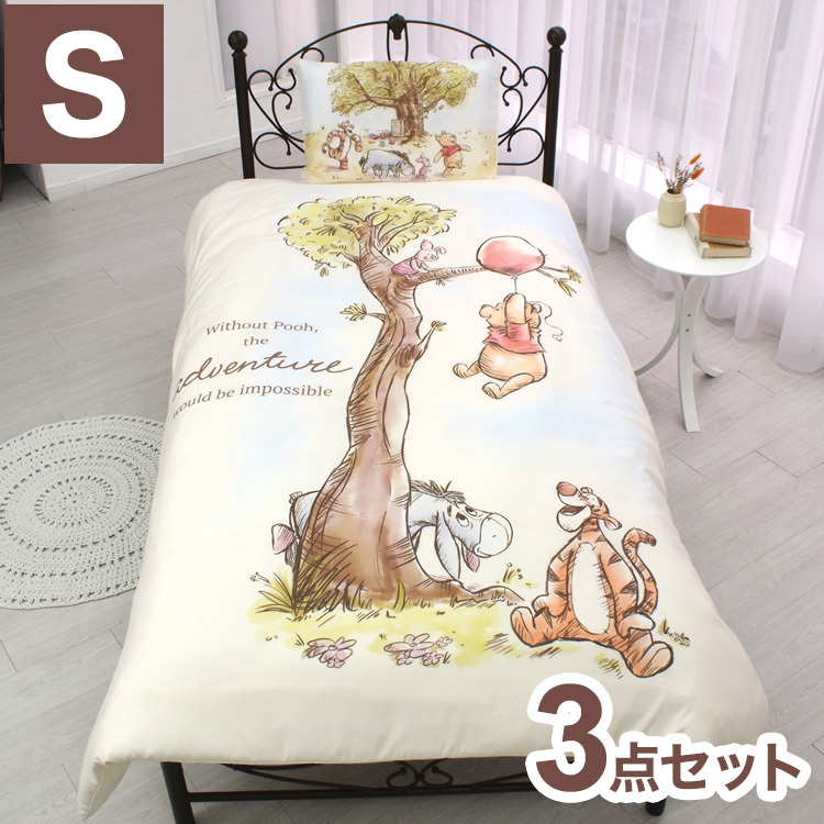 Desney ディズニー くまのプーさん 布団カバー3点セット 敷布団カバー シングルロング フィットシーツ ボックスシーツ かけ布団カバー ベッドシーツ 代引不可