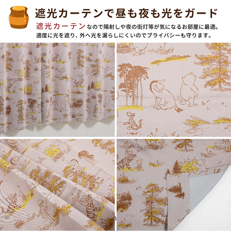 くまのプーさん 幅100×丈135cm 遮光 カーテン 2枚セット Disneyzone Disney/ディズニー クラシックプー 遮熱 プー ティガー pooh イーヨー 洗濯可能 代引不可