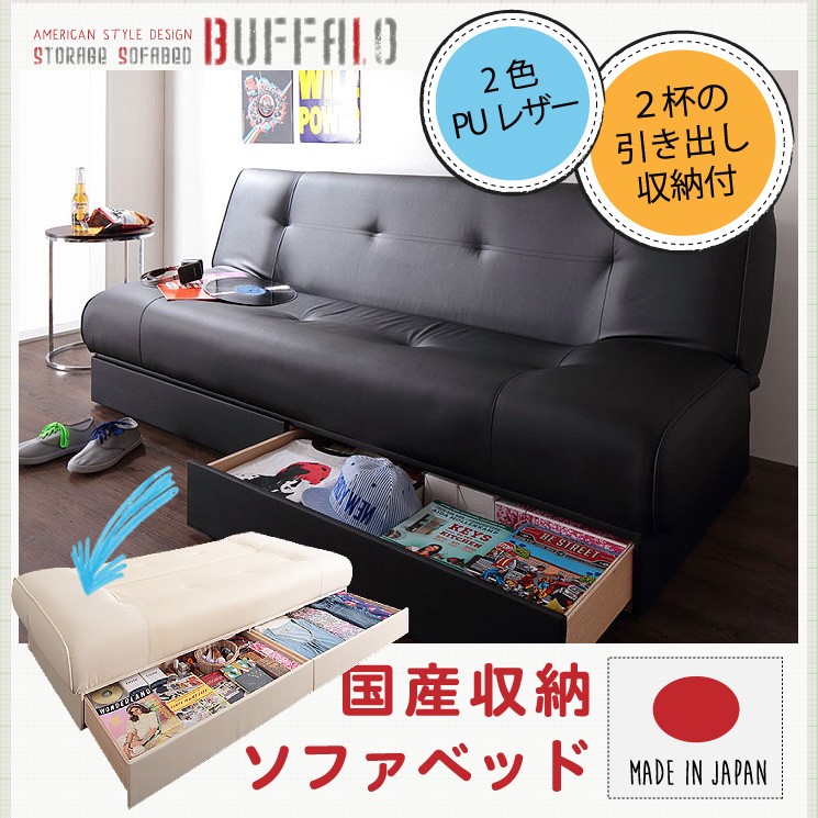 ソファベッド ソファーベッド ソファ ソファー2人掛け 引き出し付き ソファベッド 信頼の国産 収納付 【Buffalo】バッファロー 代引不可