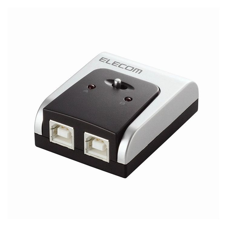 2台のパソコンで1台のUSBプリンタやストレージ機器を切り替えて使用できる切替器。USB2.0準拠。