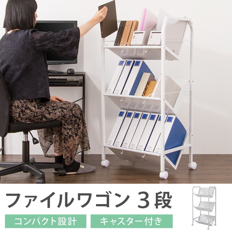ファイルワゴン 3段 ホワイト ワゴン 収納 収納ケース リビング オフィス 本棚 ラック 棚 書棚 書類 ファイル 代引不可