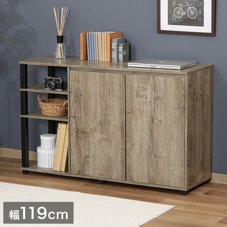 サイドボード 幅119cm 北欧 キャビネット リビングボード アンティーク調 木目調 テレビ台 テレビボード オープン収納 引き戸 収納家具 コンパクト 代引不可