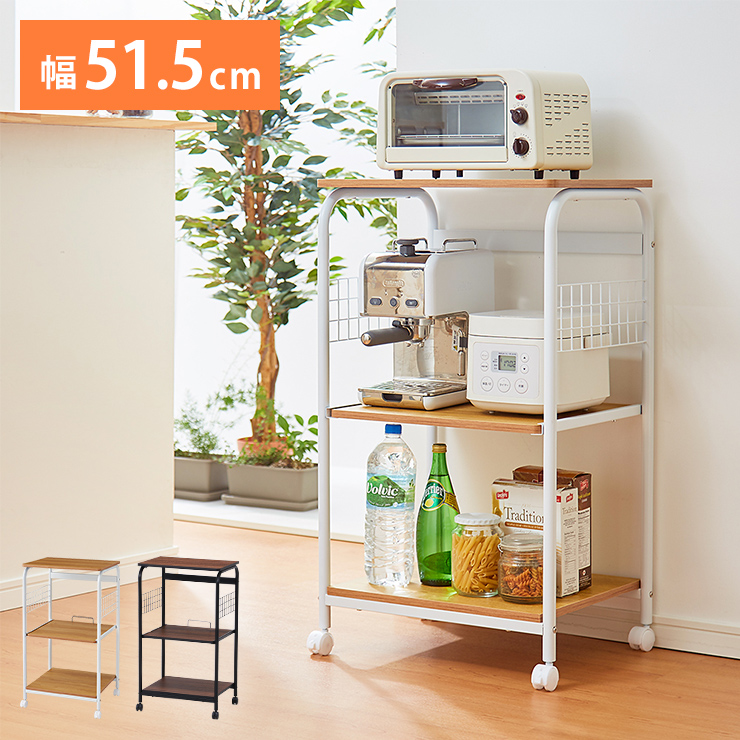 レンジワゴン 幅51.5cm 高さ89.5cm キャスター付き レンジ台 レンジボード レンジラック キッチンラック ラック キッチン収納